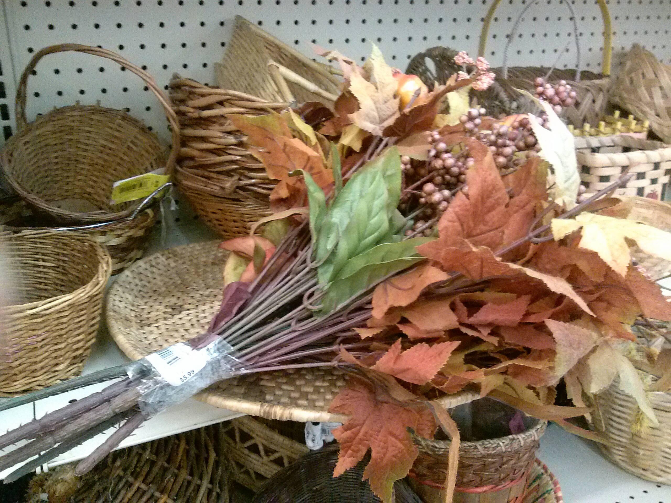I had seen some tea light candle holders in a magazine with frosted edging and wanted to try to make some for the holidays. The amber glasses would be perfect for what I had in mind. arc had a very large selection of wicker baskets and I found the piece I needed along with the fall floral items for the final touch. All of this for $24.61.