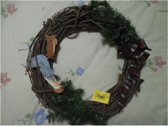 The first step to create a wreath is to find a form at your local Arc store. Anything can be used, but I found a lovely grapevine wreath that was begging to be up-dated. The cost of this form was $4.99.
