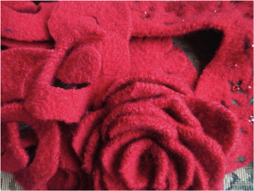 After felting the wool (the process above) it is time to cut the sweaters up. Cut circles and flower shapes and spirals and leaves. Just go to town and make a giant pile.
