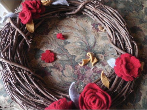 My door is lacking a cheerful Christmas wreath and I thought it would fun to make one using old wool sweaters and give an old grapevine a new life.