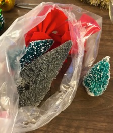 Among all of the Christmas decorations and bags that I purchased, one was this big bag of tiny trees for $2.99. I knew these would be perfect inside the snow globe plus many more of my other planned holiday crafts. Buying craft supplies at arc thrift is a great money-saver. I always get much more for my money than I do at the large craft stores.