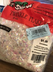 One of the other winter crafting mainstays that I bought at arc was fake snow, another source of Christmas glitter. Check out that $1.29 price tag next to the original craft store price of $6.99. Arc prices for the win!