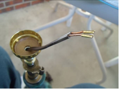 The lamp has such beautiful shades of blue and green and I LOVE the 1970s drip glaze. The only problem was that the plug was bent and the wiring looked rough. Usually I’d let a little thing like fear of a painful shock turn me away from such a beautiful lamp-but not today! I figured rewiring a lamp couldn’t be that hard, could it? Could it?! I’ve seen so many amazing vintage lamps at arc, but I’ve never known how to rewire them-now I will!